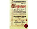 Der Großvater des heutigen Mühlenbesitzers erlangt den Meisterbrief im Müllerhandwerk (siehe Bild)
